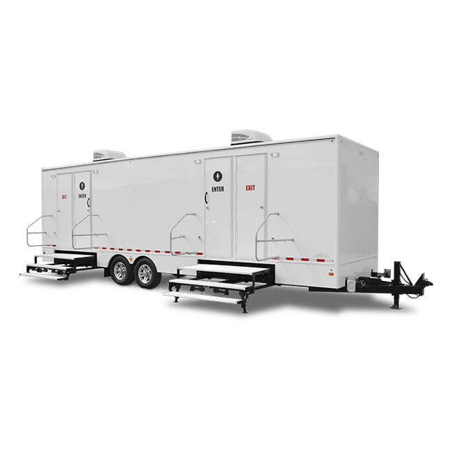 For larger projects, the 8-station restroom trailer offers eight private stalls in a full-size, first-class layout designed to handle higher traffic with ease.
